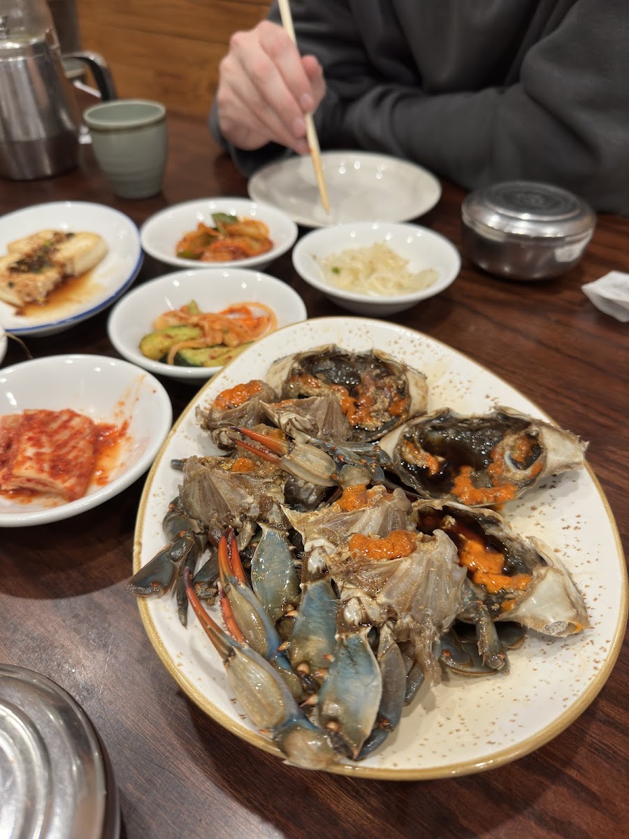 I’ve been coming here for the raw crab a couple times now - great price and awesome flavor. We also ordered the bossam and it is served with oyster kimchi (YUM!). Service is good, the ahjummas are so friendly. Every time I come here with my group, we inhale. Proof in the before and after pics.